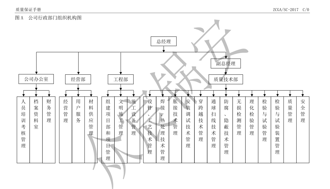 負(fù)責(zé)建立與鍋爐安裝、維修和壓力管道安裝質(zhì)量******體系相適應(yīng)的組織機(jī)構(gòu)、任免質(zhì)量******體系的責(zé)任人員:并配備必要的資源: